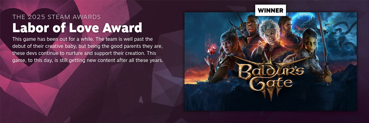Congratulations to the team at Larian on Baldur's Gate III winning the 2025 Steam Award for Labor of Love!
