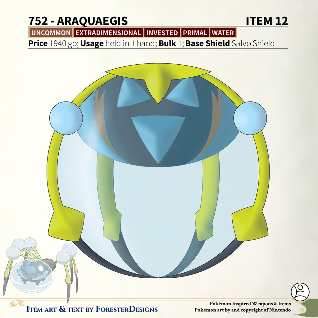 A #PF2e conversion of my older #Pokemon #MagicItems, with an #Araquanid #shield to create your own aquarium