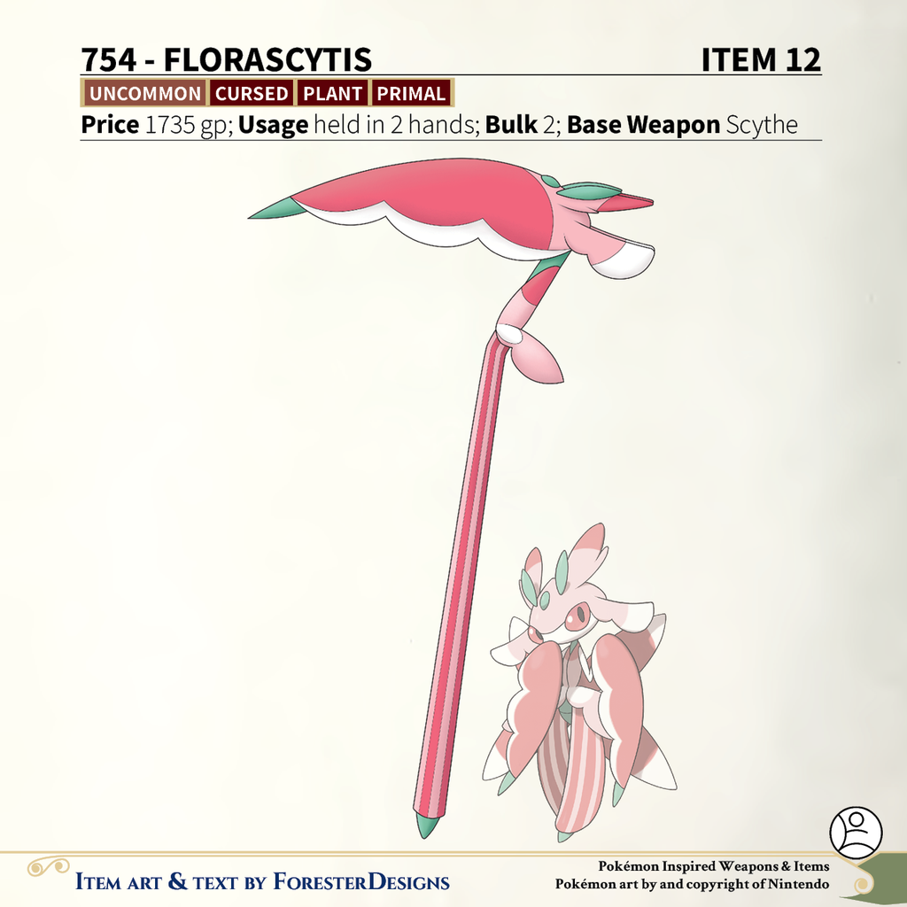 A #PF2e conversion of my older #Pokemon #MagicItems, with a #Lurantis #scythe to soak in the sun