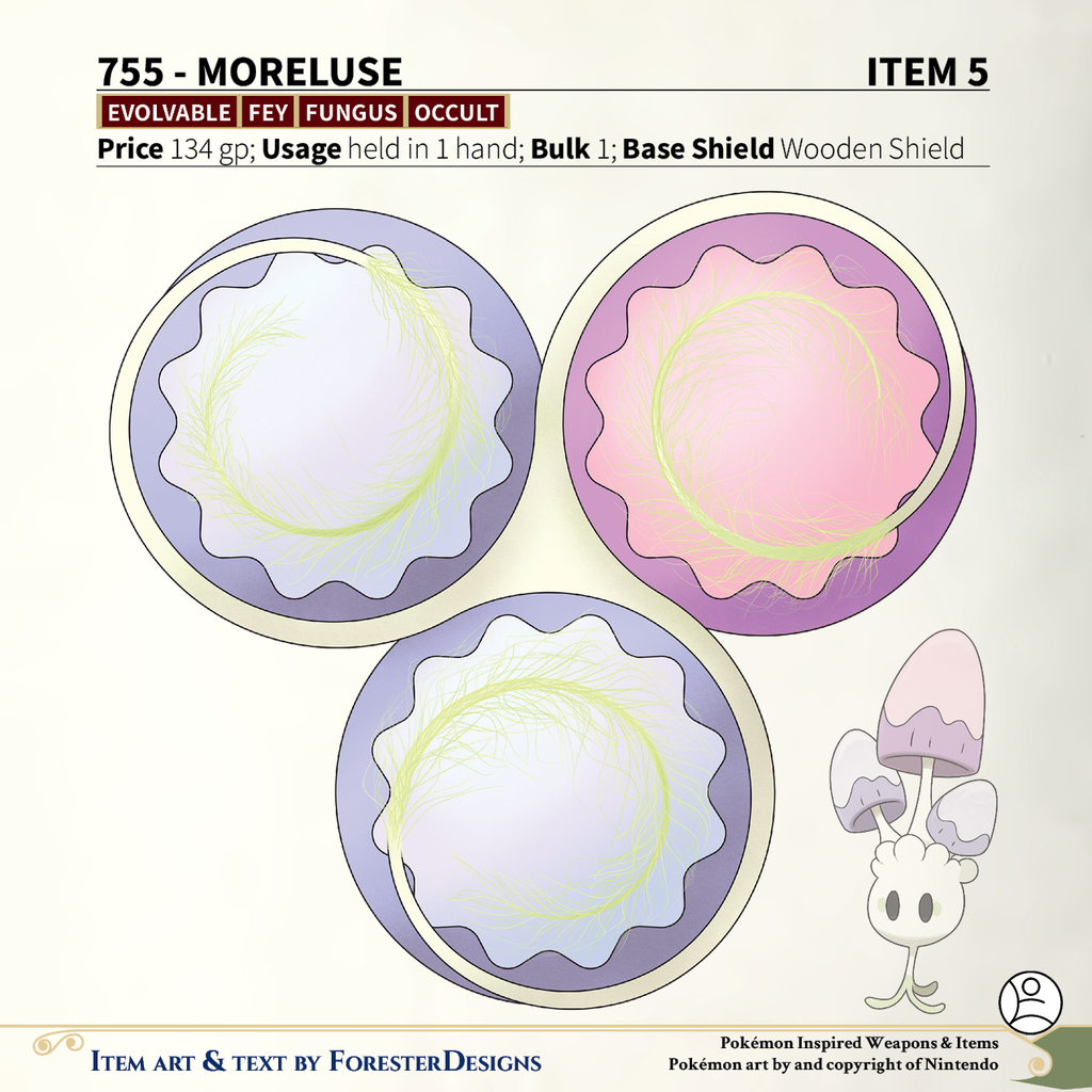 A #PF2e conversion of my older #Pokemon #MagicItems, with a #Morelull #shield to light up the darkness