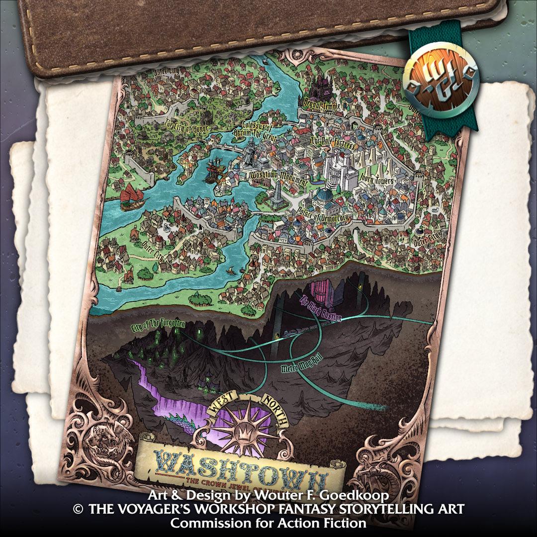 Wastown, the Jewel of Murka, is another handcrafted city map by yours truly for Action Fiction‘s Monsters of Murka: Ratified & Radified!