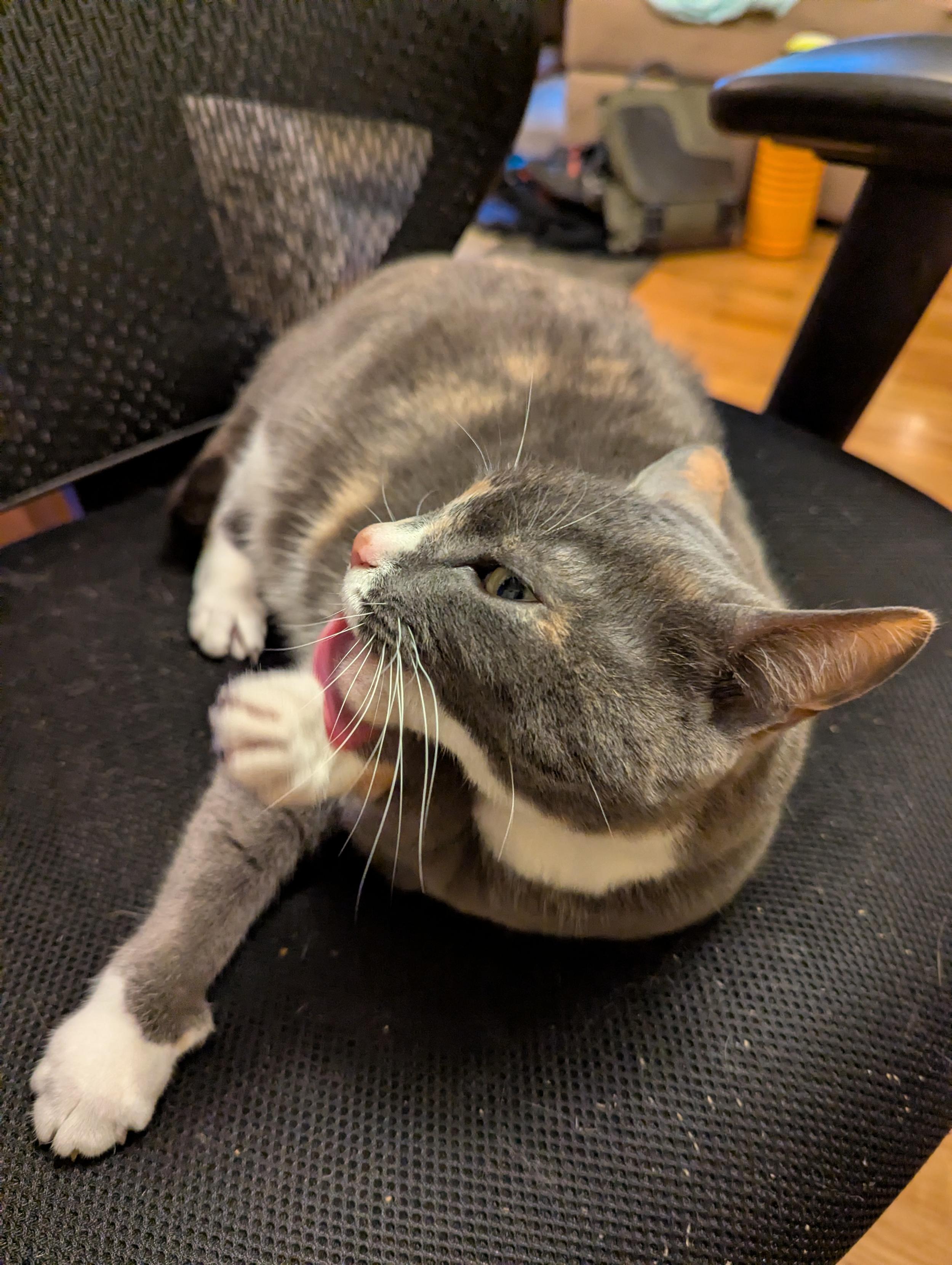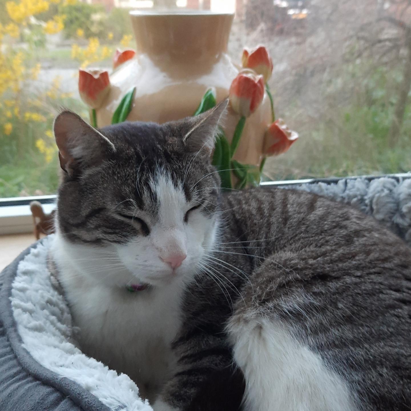 Lola is ready for her closeup …courtesy of a new-to-me Micro-NIKKOR 105mm f/2.8 lens, attached to my #Fujifilm X-T5 via adapter. A great, classic macro lens. Manual focus, manual aperture.If you zoom in, you can see my neighbor’s back yard reflected on her cornea.Happy #caturday, everyone!#cat #cats #CatsOfMastodon #Nikon #MicroNikkor #Fuji #XT5 #macro #photography