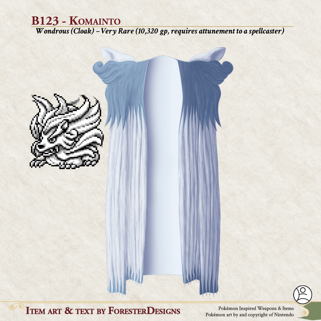 My #TTRPG #Pokemon #MagicItem of the Day in both #DnD and #PF2e, with a #Komainu #cloak to help you stay close to the stars!
