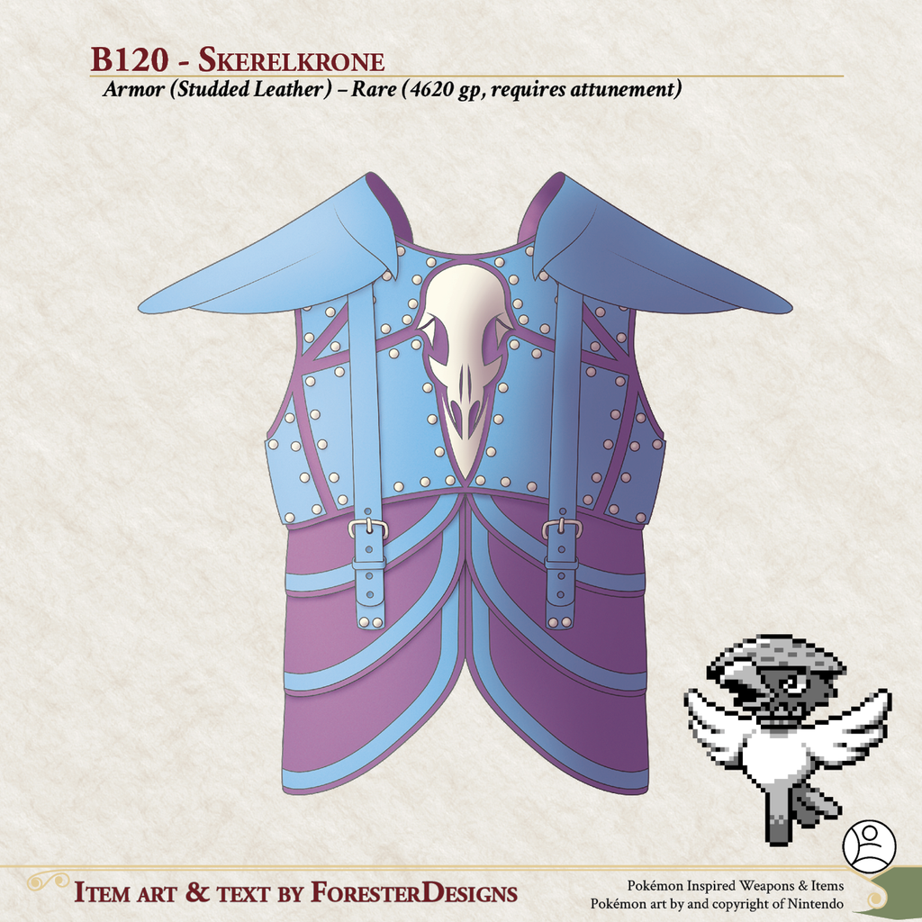 My #TTRPG #Pokemon #MagicItem of the Day in both #DnD and #PF2e, with some #Scarecrane #armor to scare attackers!