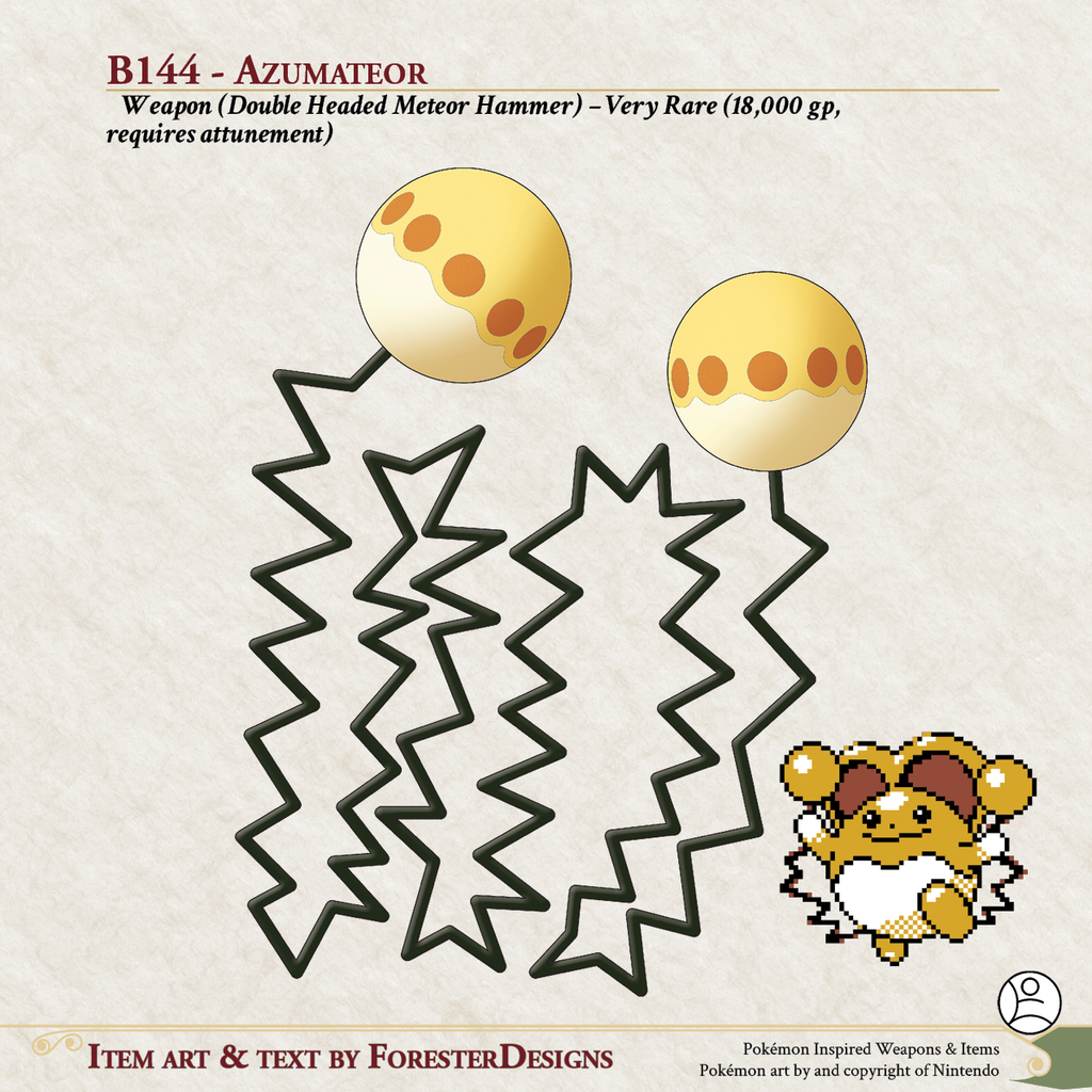 My #TTRPG #Pokemon #MagicItem of the Day in both #DnD and #PF2e, with a Beta #Azumarill #meteorhammer to smash through trees!
