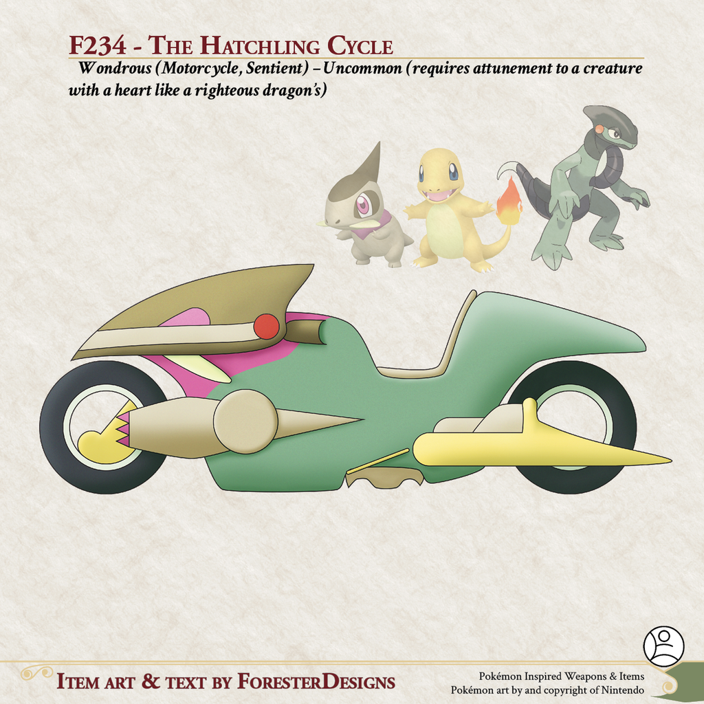 My #DnD #Pokemon #MagicItem of the Day, with a fusion of #Cyclizar, #Charmander, & #Axew for a #motorcycle to hatch your dragon