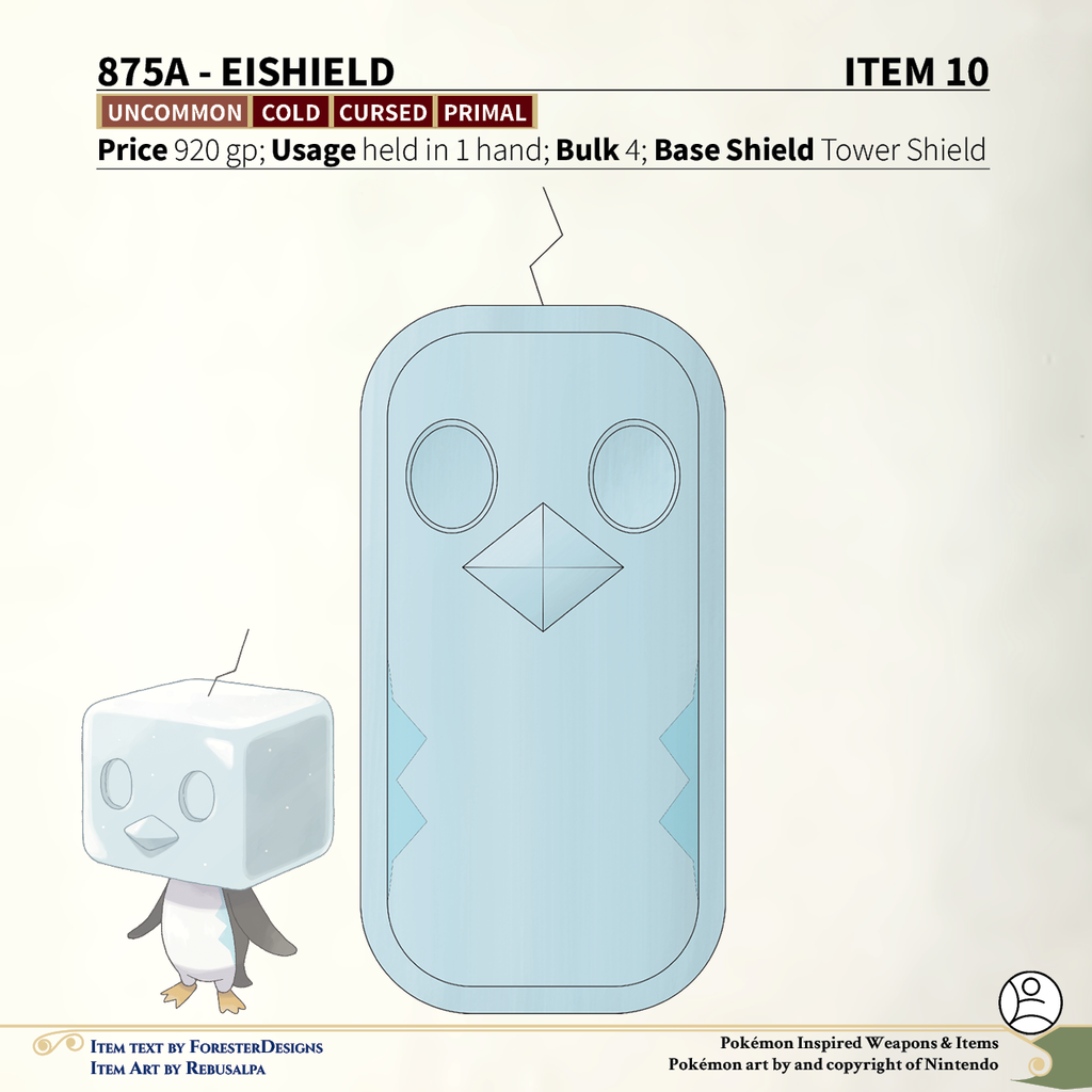 A #PF2e conversion of my older #Pokemon #MagicItems, with an #Eiscue #rapier to make you break out!Come vote for future items on my Patreon#MagicItem #Pathfinder2e #RPG #RPGArt #PokemonArt #Pathfinder #TTRPG #PathfinderArt #Illustration #FantasyArt #TabletopRPG #PokemonFanArt #FantasyIllustration #Homebrew #TabletopGaming #FantasyGaming #RolePlayingGames #TabletopArt #GameMaster #FantasyWorld #HomebrewContent #GameDesign #MagicItemDesign #PathfinderCommunity #PathfinderHomebrew #HomebrewMagic
