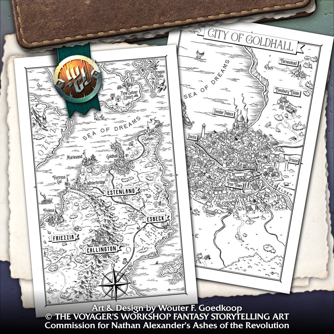 I created these two maps (one regional and the other a city map) for Nathan Alexander‘s upcoming debut novel Ashes of the Revolution, available in March 2026!