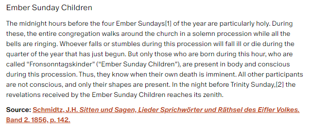 At midnight before Ember Sundays, the spirits of all people in a village will walk around the local church - but only few can perceive this procession...#Germany #folktale #folklore https://www.patreon.com/posts/sunday-children-86272312