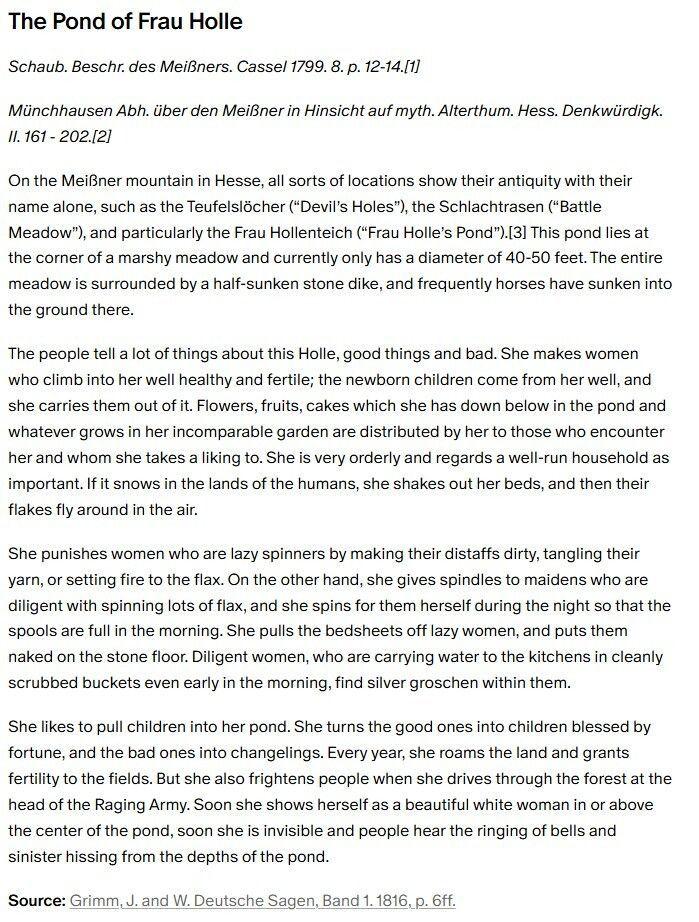 Frau Holle likes to abduct children into her pond, and she rewards or punishes them according to her own arbitrary moral code.'n#Germany #folktale #folklore https://www.patreon.com/posts/grimm-tidings-2-126376638