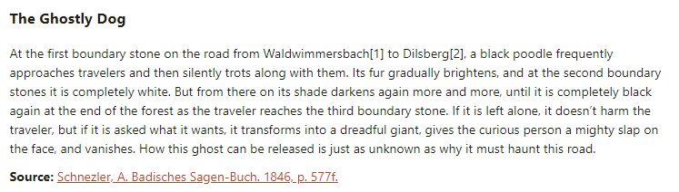 A color-changing poodle can be seen at the road from Waldwimmersbach to Dilsberg.'n#Germany #folktale #folklore #dog https://www.patreon.com/posts/stray-dogs-33668107