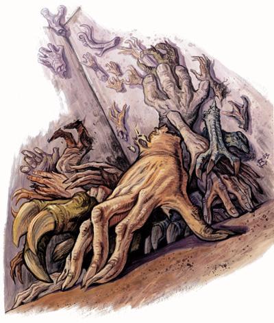 Crawling claws were amputated and then reanimated hands. They were employed by dark wizards and warlocks to perform watch duty or provide an extra set of hands.#dnd #forgottenrealms #Spooktober: Player's Guide to Faerûn: Tom Baxahttps://forgottenrealms.fandom.com/wiki/Crawling_claw