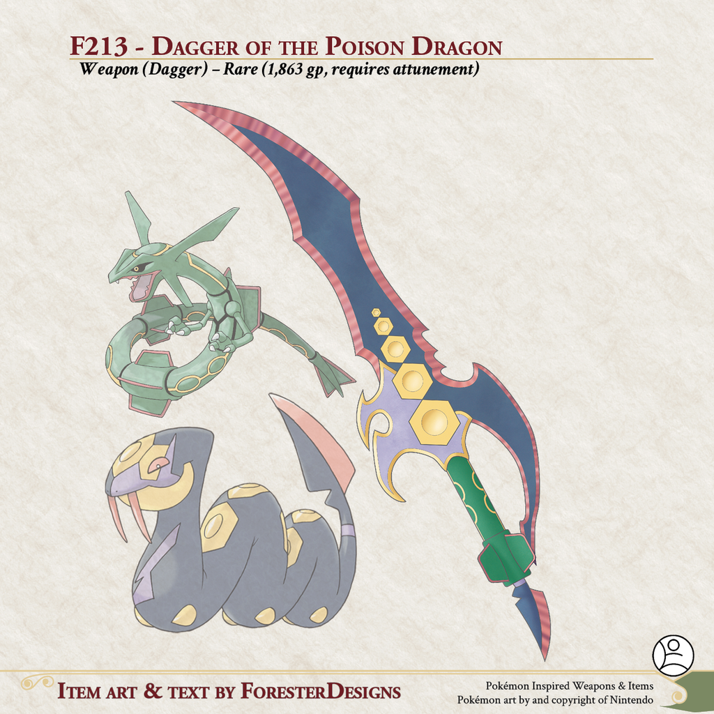 My #DnD #Pokemon #MagicItem of the Day, with a #fusion of #Rayquaza and #Seviper for a poison #dagger to keep you from being impaired