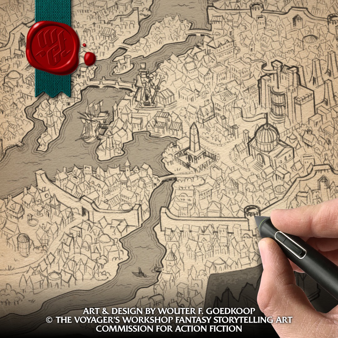 In my multi-disciplinary approach to visual storytelling, I use a combination of traditional and digital tools in order to create unique fantasy art and maps that support the tales players are weaving at the table.