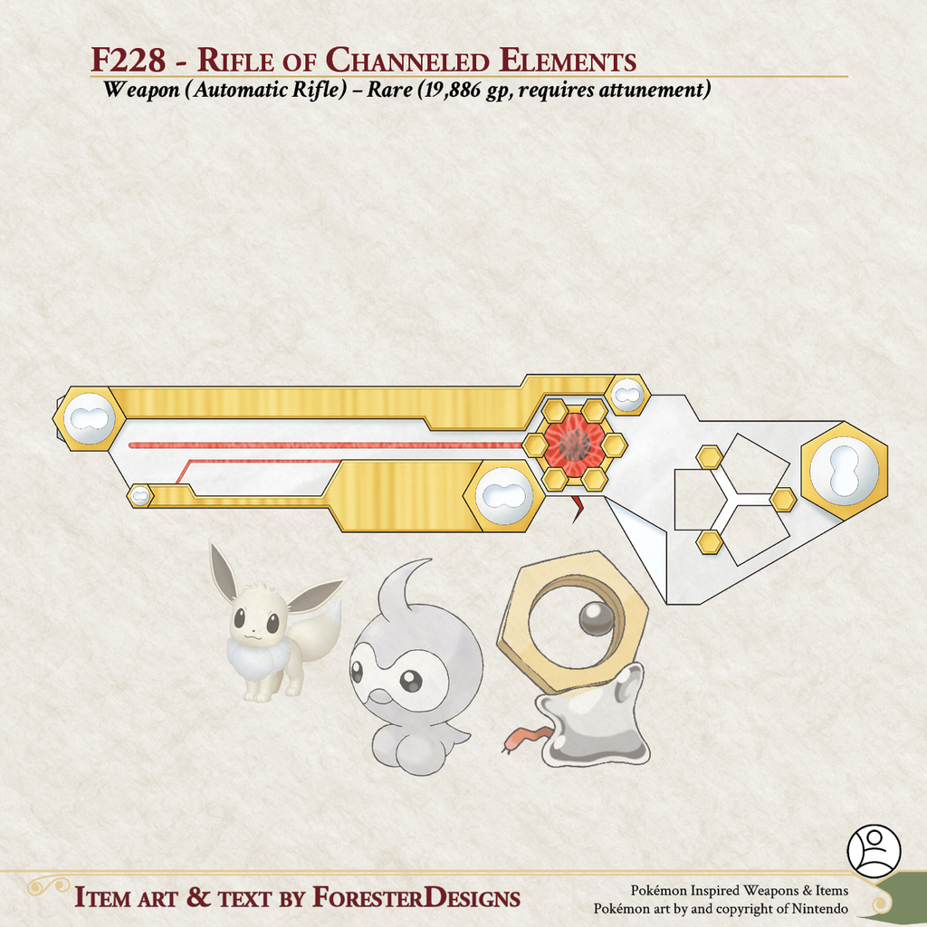 My #DnD #Pokemon #MagicItem of the Day, with a fusion of #Eevee, #Castform, and #Meltan for a #rifle to channel elemental powers!Come vote for future items on my Patreon#DnD5E #MagicItems #DnDHomebrew #Art #RPG #RPGArt #TabletopGaming #FantasyArt #HomebrewMagic #PokemonArt #DnDArt #DungeonsAndDragons #TTRPG #MagicItemDesign #Illustration #GameDesign #RolePlayingGames #FantasyGaming #GameMaster #HomebrewContent #FantasyWorld #FantasyIllustration #PokemonFanArt #Homebrew #TabletopRPG