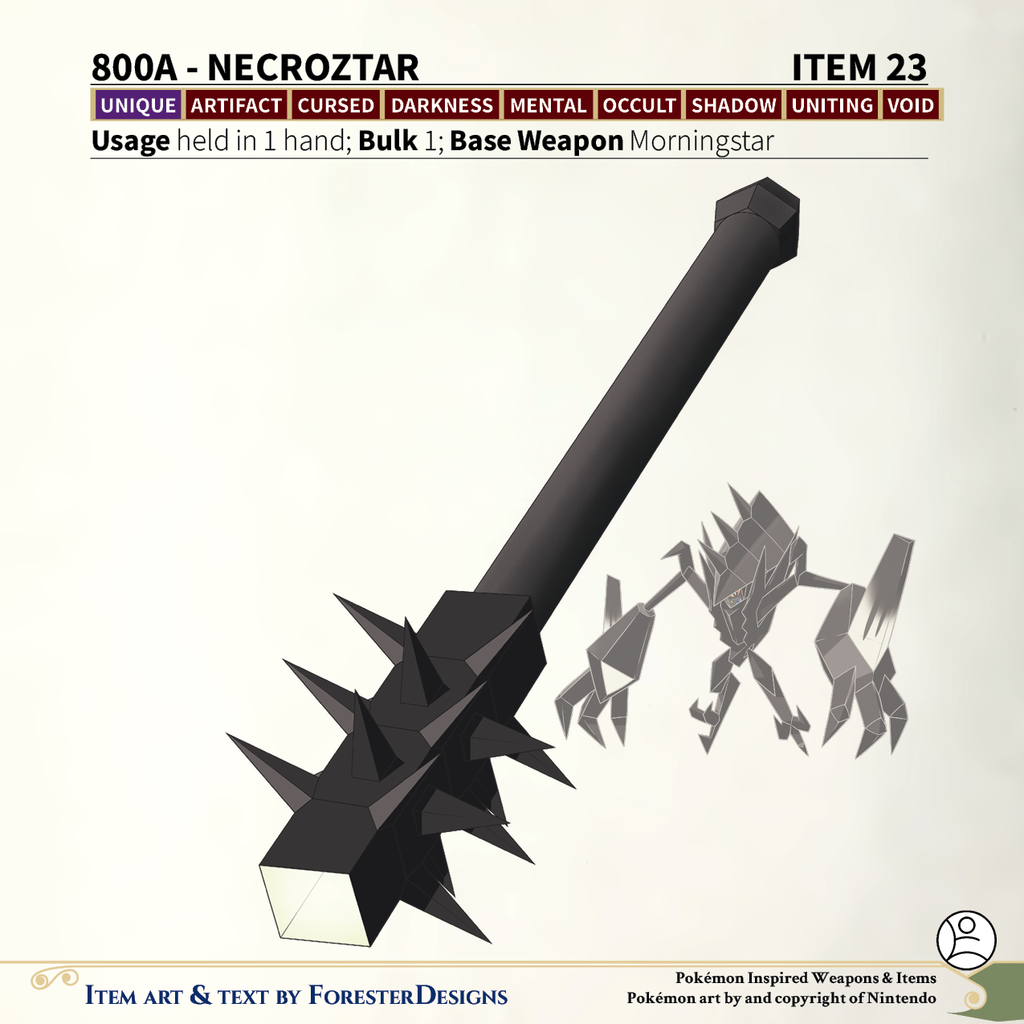 A #PF2e conversion of my older #Pokemon #MagicItems, with a #Necrozma #morningstar to pierce the light