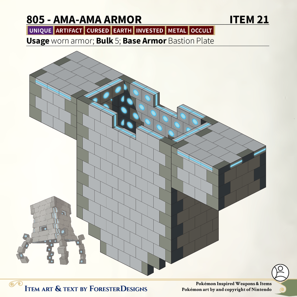 A #PF2e conversion of my older #Pokemon #MagicItems, with some #Stakataka #armor to build some walls