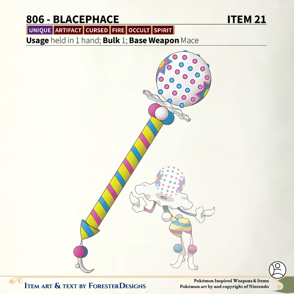 A #PF2e conversion of my older #Pokemon #MagicItems, with a #Blacephalon #mace that will blow your mind