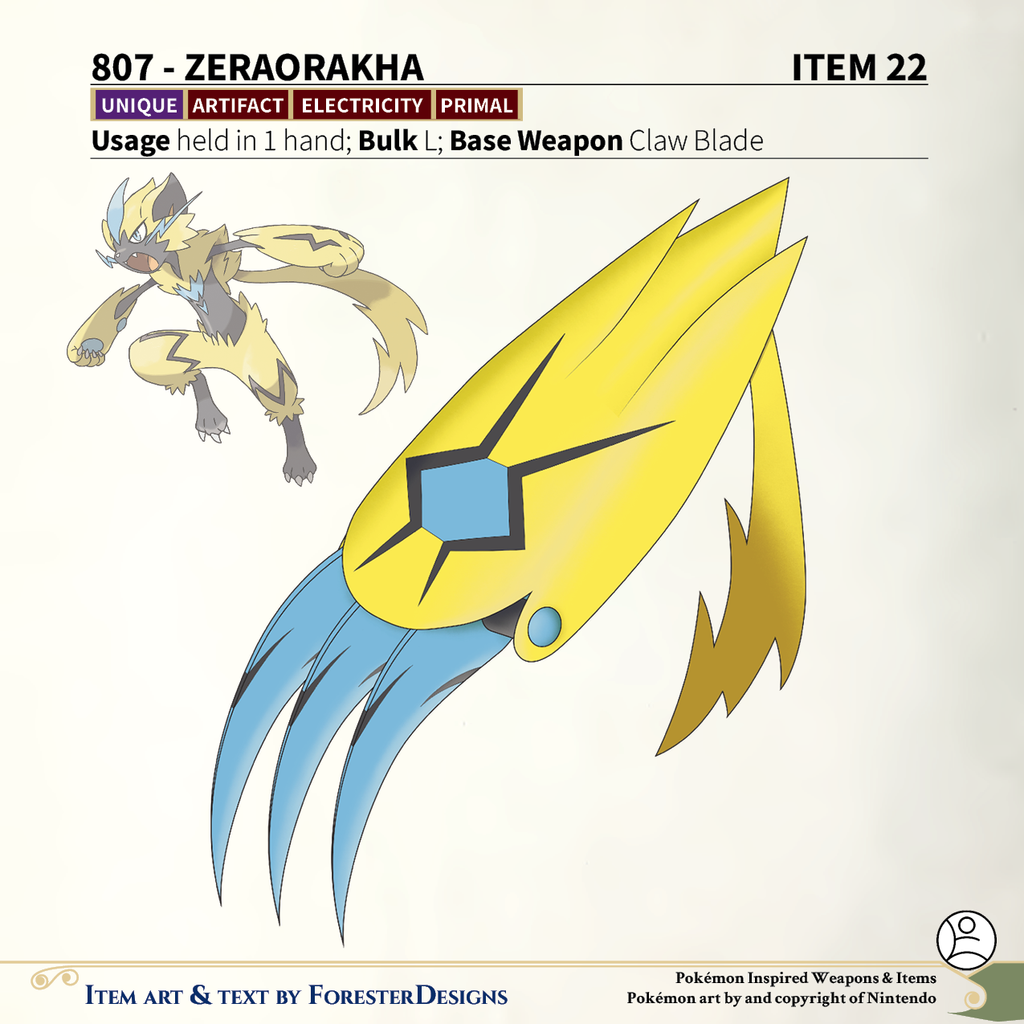 A #PF2e conversion of my older #Pokemon #MagicItems, with a #Zeraora #claw blade to strike like lightning