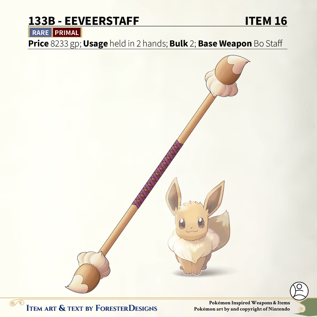 A #PF2e conversion of my older #Pokemon #MagicItems, with a Partner #Eevee bo #staff to conduct elemental powers
