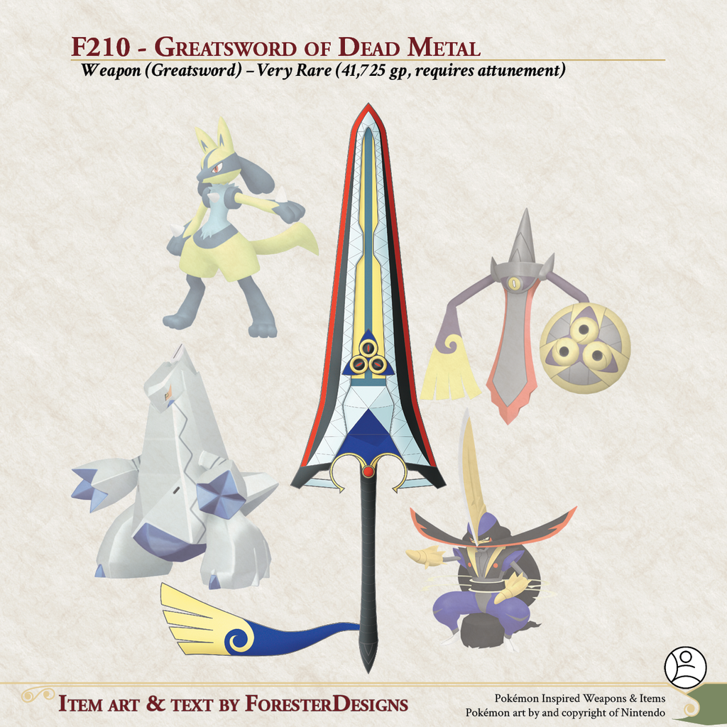 My #DnD #Pokemon #MagicItem of the Day, with a fusion of #Duraludon, #Lucario, #Kingambit, #Aegislash #greatsword to strike with cold steel