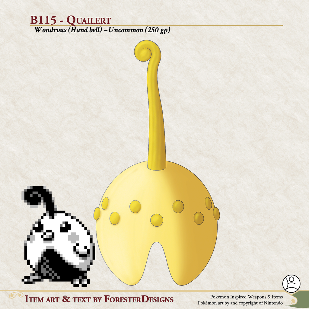 My #TTRPG #Pokemon #MagicItem of the Day in both #DnD and #PF2e, with a #Quail hand #bell to set some alarms!