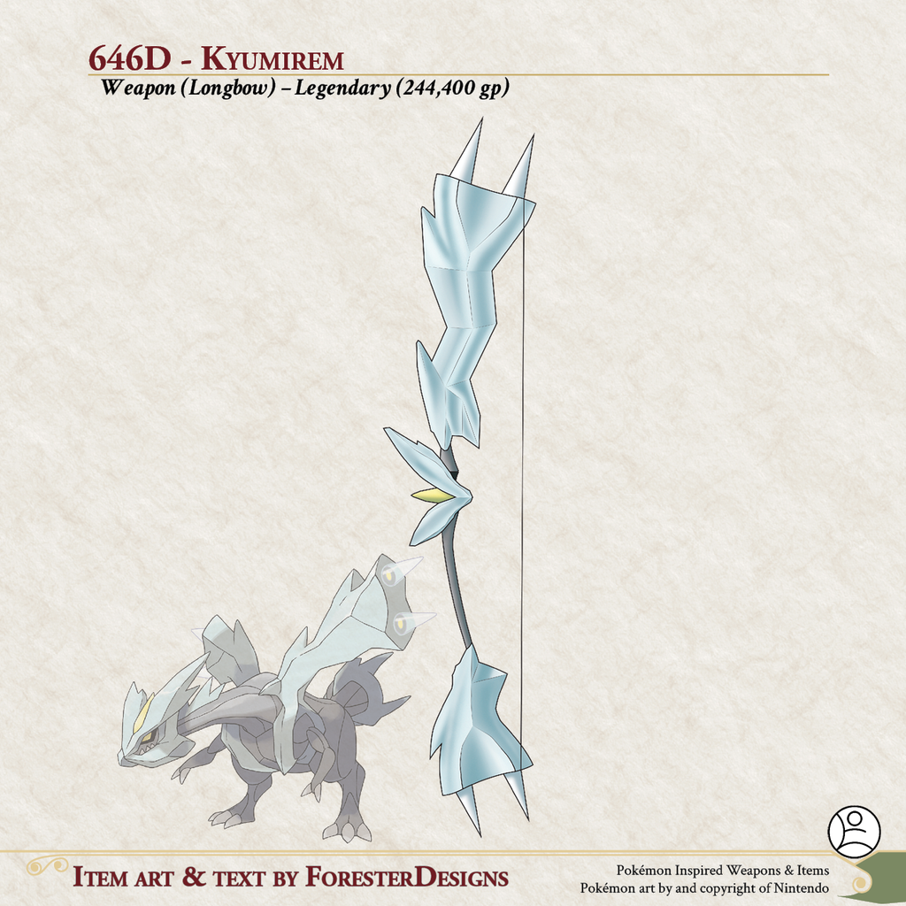 My #TTRPG #Pokemon #MagicItem of the Day in both #DnD and #PF2e, with a #Kyurem #longbow to freeze your enemies solid!
