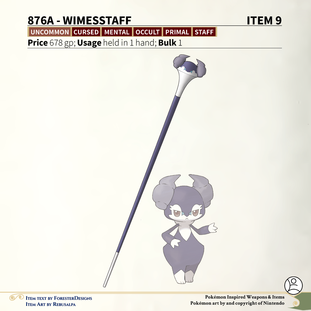 A #PF2e conversion of my older #Pokemon #MagicItems, with an #Indeedee #staff to help serve someone
