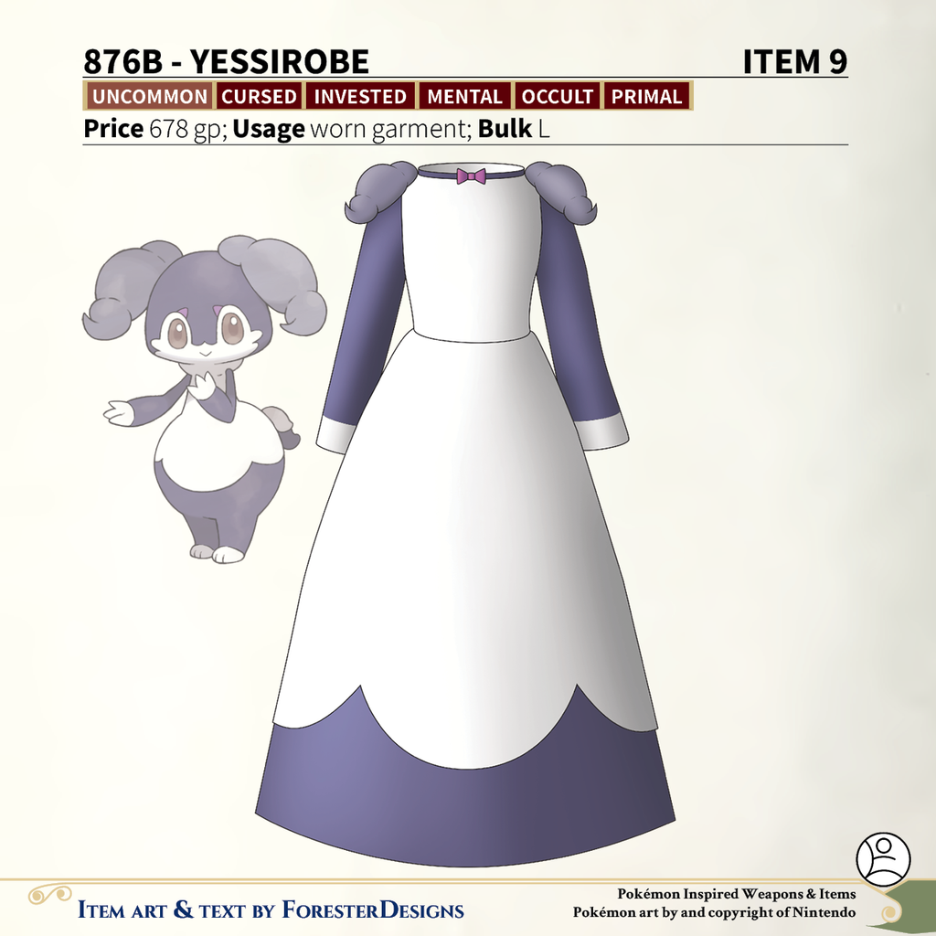 A #PF2e conversion of my older #Pokemon #MagicItems, with an #Indeedee #robe to help serve someone