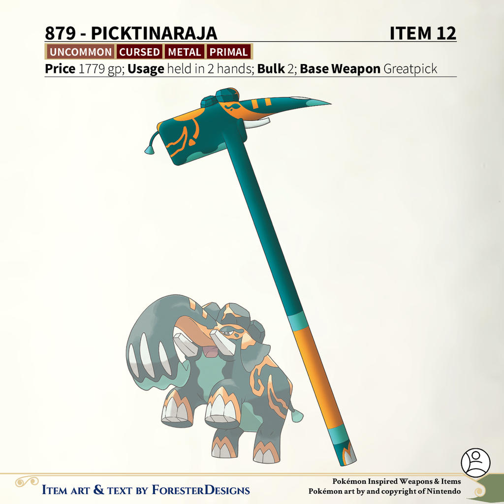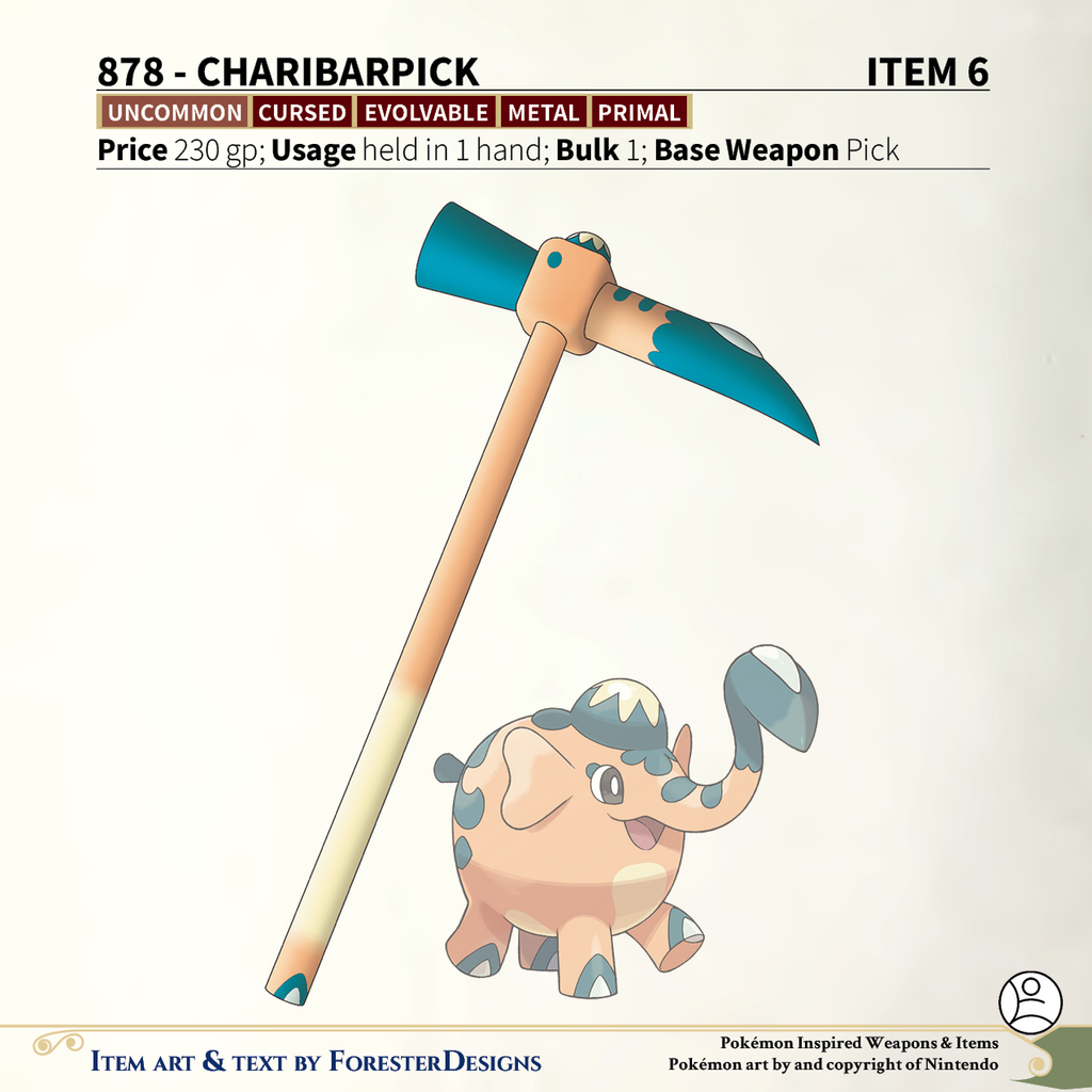 A #PF2e conversion of my older #Pokemon #MagicItems, with a #Copperajah #pick to carry that weight