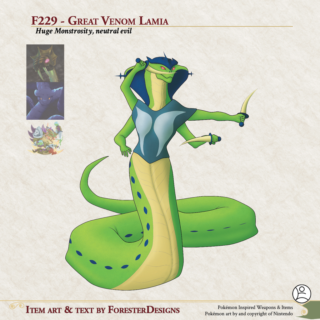 My #DnD #Creature of the Day, with a fusion of the Great Devourer from Ninjago, Kasaka from Solo Leveling, and High Venomfang Dragon from Dragon City for a #lamia to really get that poison in there