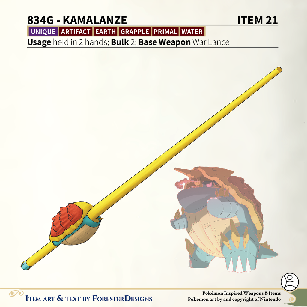 A #PF2e conversion of my older #Pokemon #MagicItems, with a #Drednaw #lance to spout stone pillars