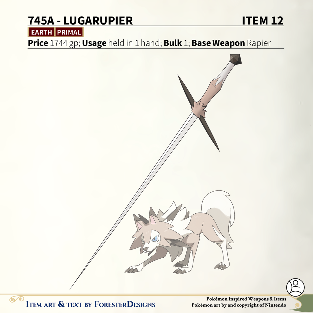 A #PF2e conversion of my older #Pokemon #MagicItems, with a #Lycanroc #rapier to slide over stone