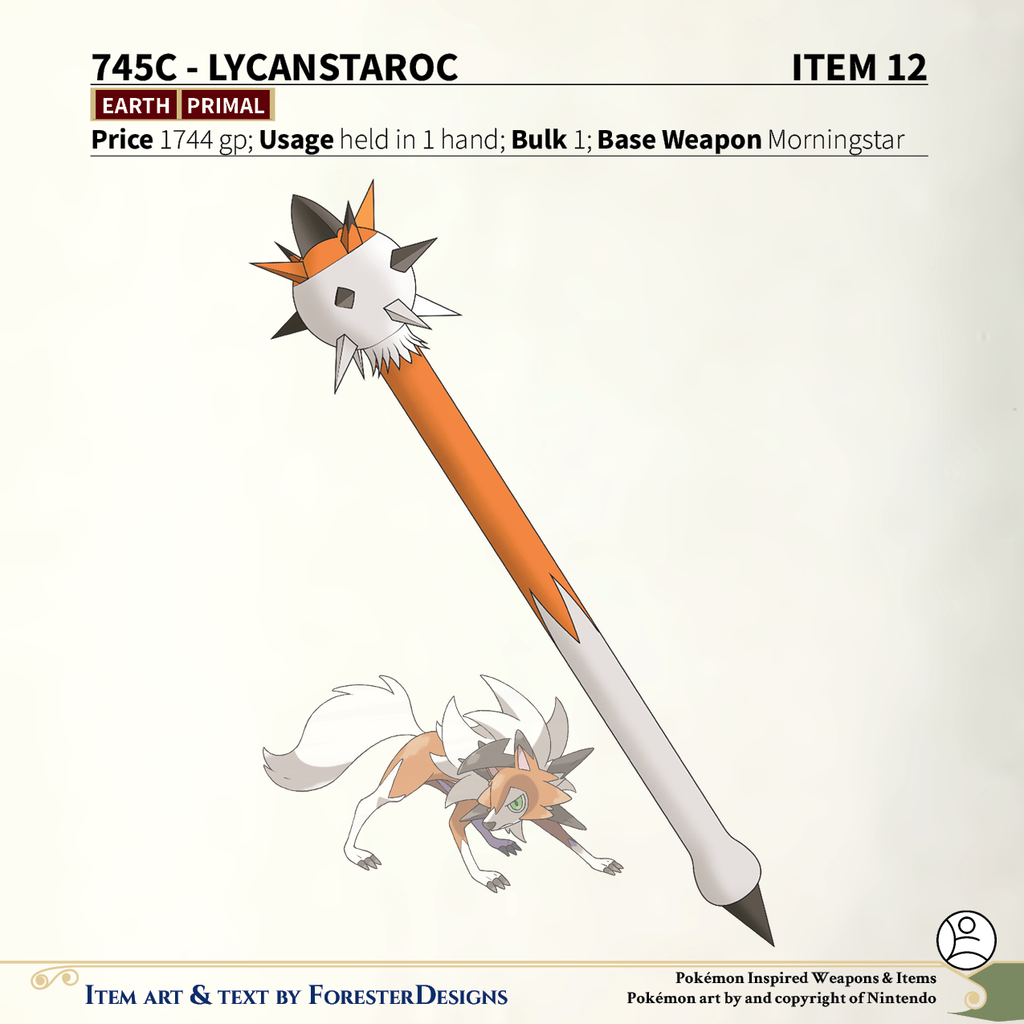 A #PF2e conversion of my older #Pokemon #MagicItems, with a #Lycanroc #morningstar to keep from getting confused