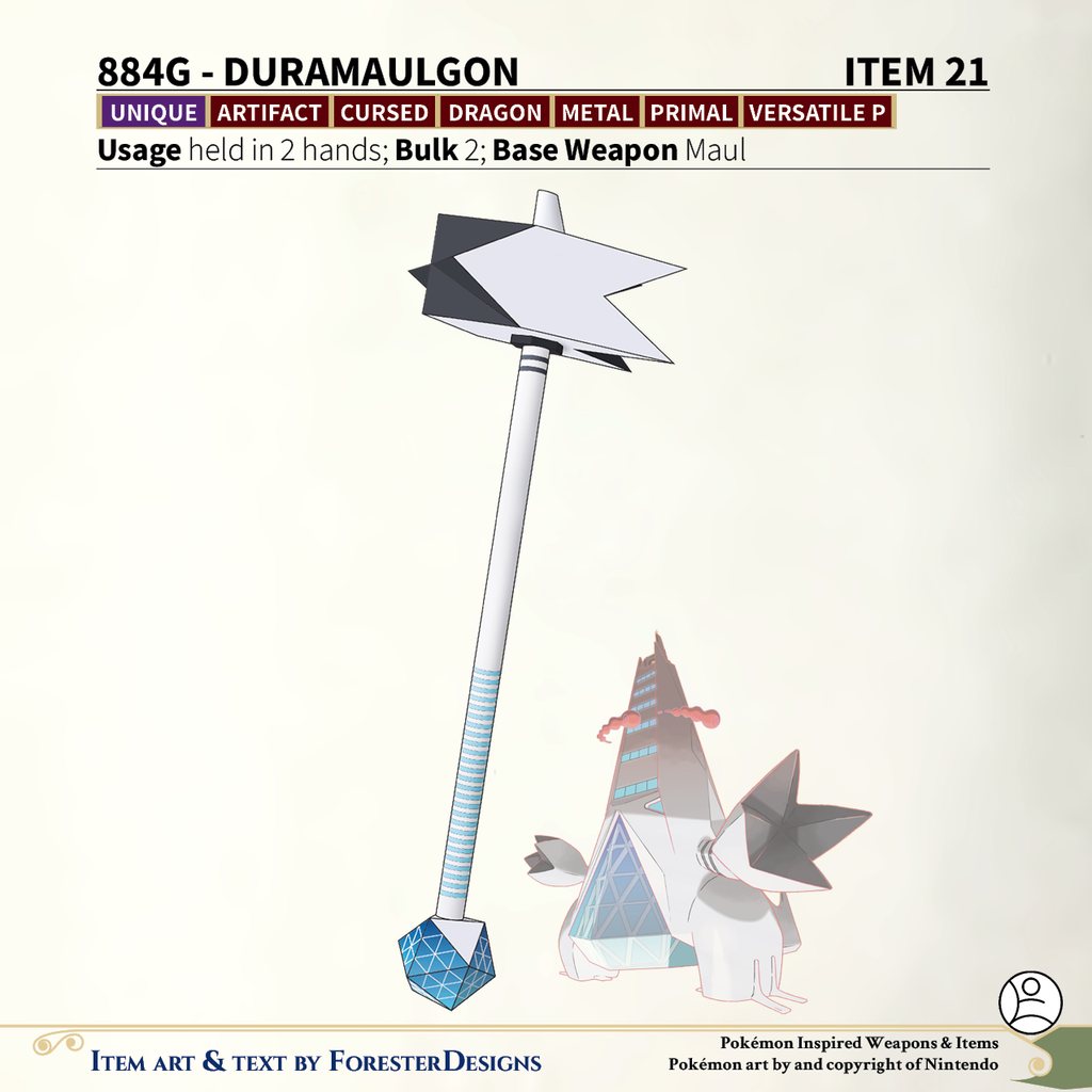 A #PF2e conversion of my older #Pokemon #MagicItems, with a #Duraludon #maul of heavy pressure