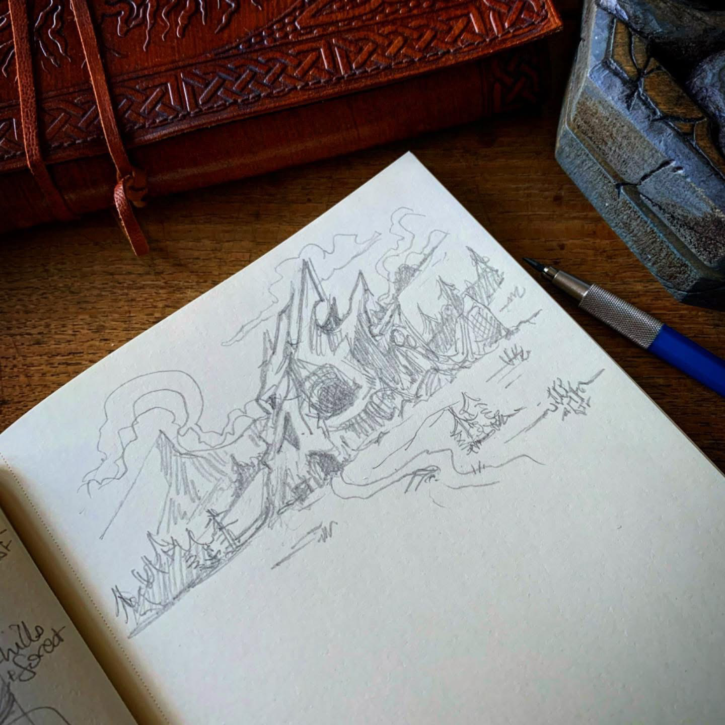 Sketchbook doodle. Ideas for another side quest take shape as the warm brew clears the early morning fog…#fantasyart #mapmaking #pencil #sketch #ttrpg #adventures #handcrafted #storytelling #noai