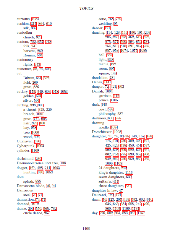 #TeXLaTeX question:I use imakeidx for creating my indices, and while it works, the indices get awfully long - one particular sub-index has now reached a length of more than 150 pages, which is hard to navigate.Is there any way of subdividing that index by letter (i.e. "A", "B", "C", and so forth) and adding these to the Table of Contents?