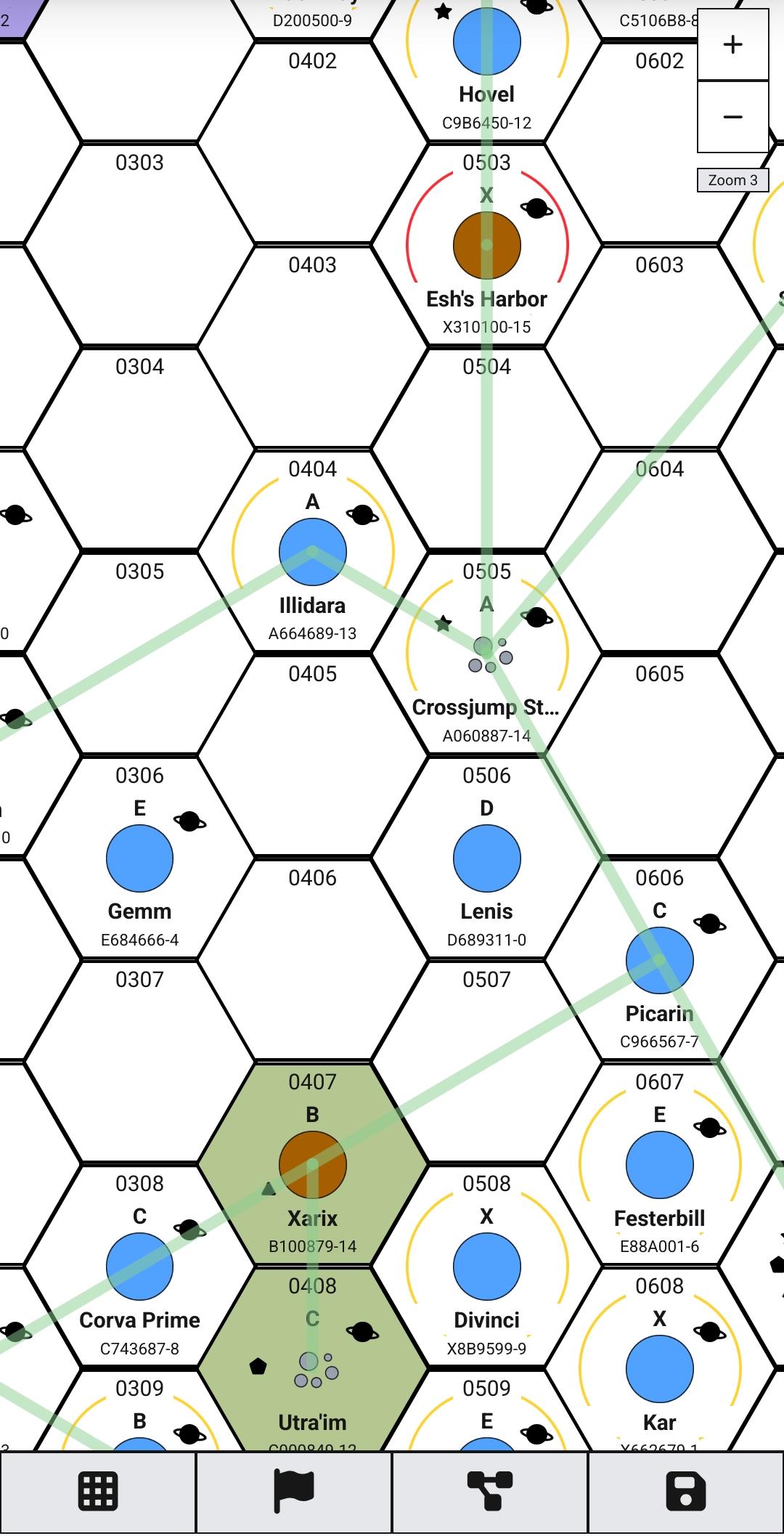 It's been a hot second since I've posted about this, but I've been hard at work on my #TravellerRPG mapper tool. You can now add routes and territories!!! And it's mobile friendly! Take a look at the subsector I've been building if you wanna check it out https://ellebell.dev/mapper/68952847043ff9cef4865f67#webdev #ttrpg