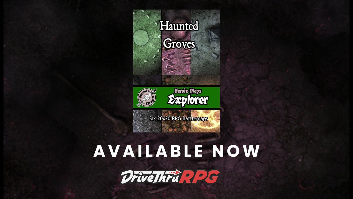 Heroic Maps - Explorer: Haunted Groves is available now from @heroicmaps'nGet it here: https://tinyurl.com/3ncnufmj'nHaunted Groves is a standalone set, comprising 6 20x20 battlemaps.