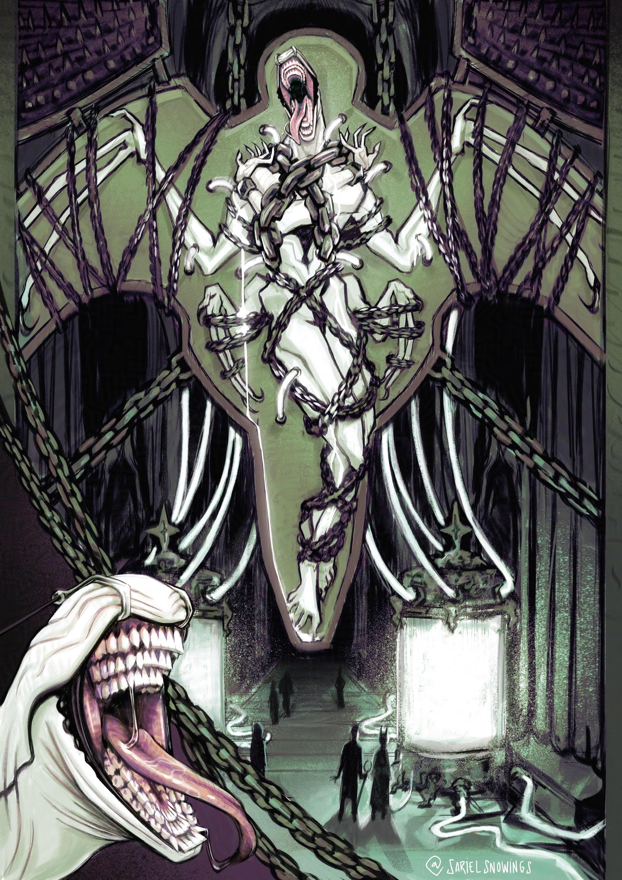 “Wicky… [SPOILER SPOILER SPOILER]” When Brennan described this gorgeous and tormented angel, I simply knew I had to draw it.Rows and rows of bicuspids, baby!#CriticalRoleCampaign4 #CriticalRole #CriticalRoleSpoilers #CriticalRoleFanart #MastoArt #dungeonsanddragons #criticalRoleArt #WicanderHalovar #tyranny