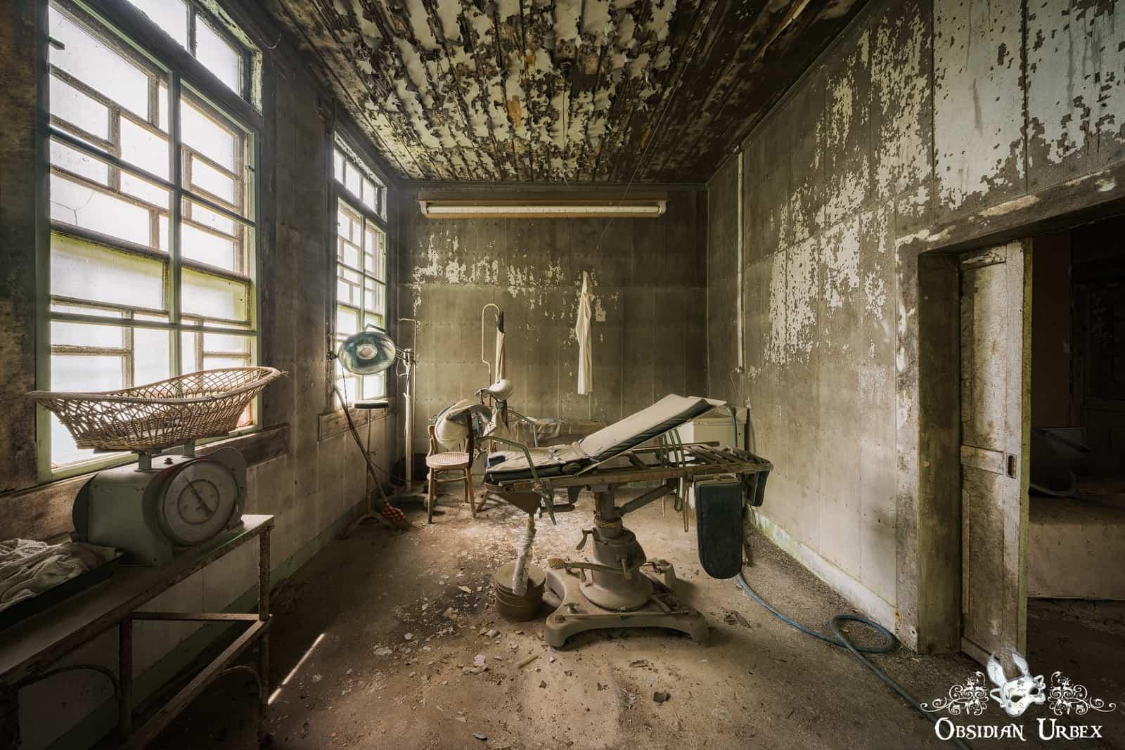 空色医院 (Sky-Blue Clinic), JapanSky-Blue Clinic is an abandoned hospital and surgery. Much of the building is locked or collapsed, with bamboo pushing through fallen walls and ceilingsIn contrast, the doctor’s offices and surgery remain intact, quiet, and largely untouched. The surgical room was set up for obstetrics. A side room served as a dispensary, lined with bottles and vials. #urbex #haikyo #japan #abandoned
