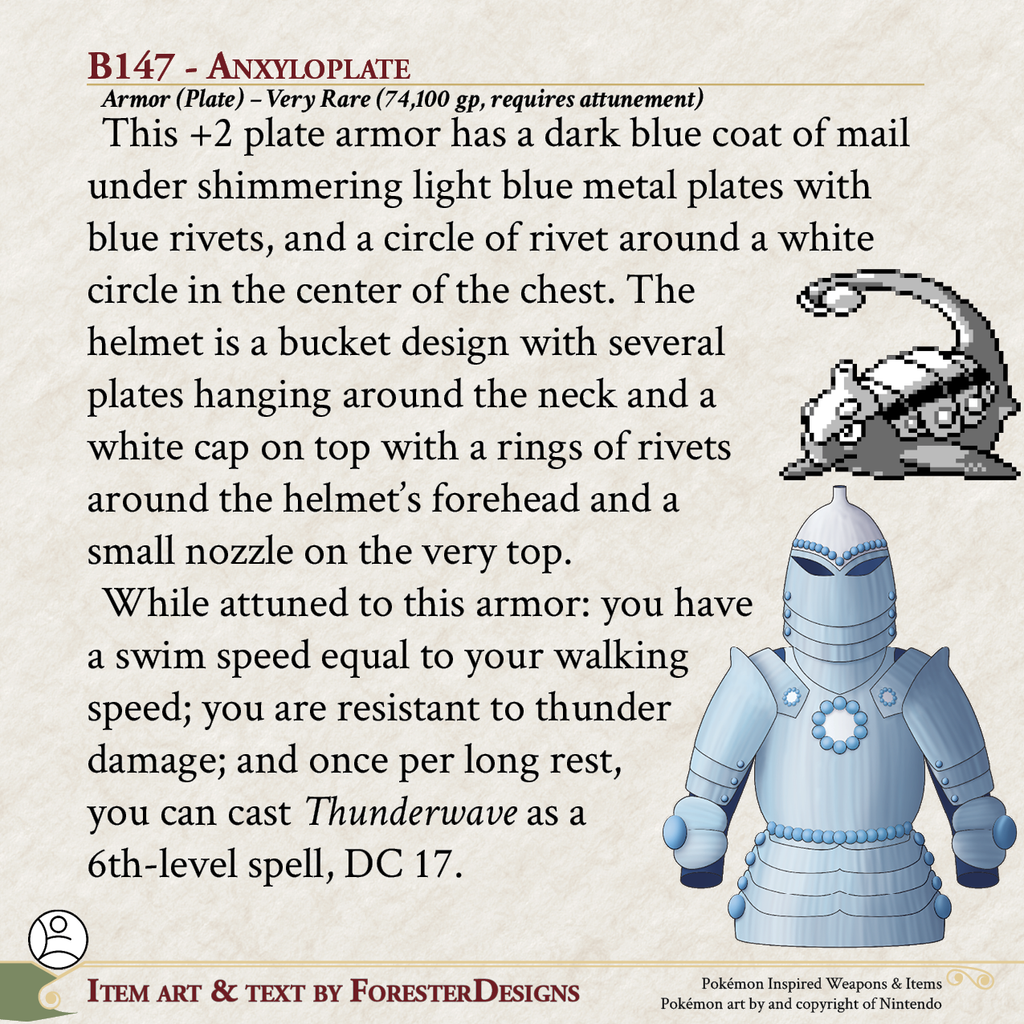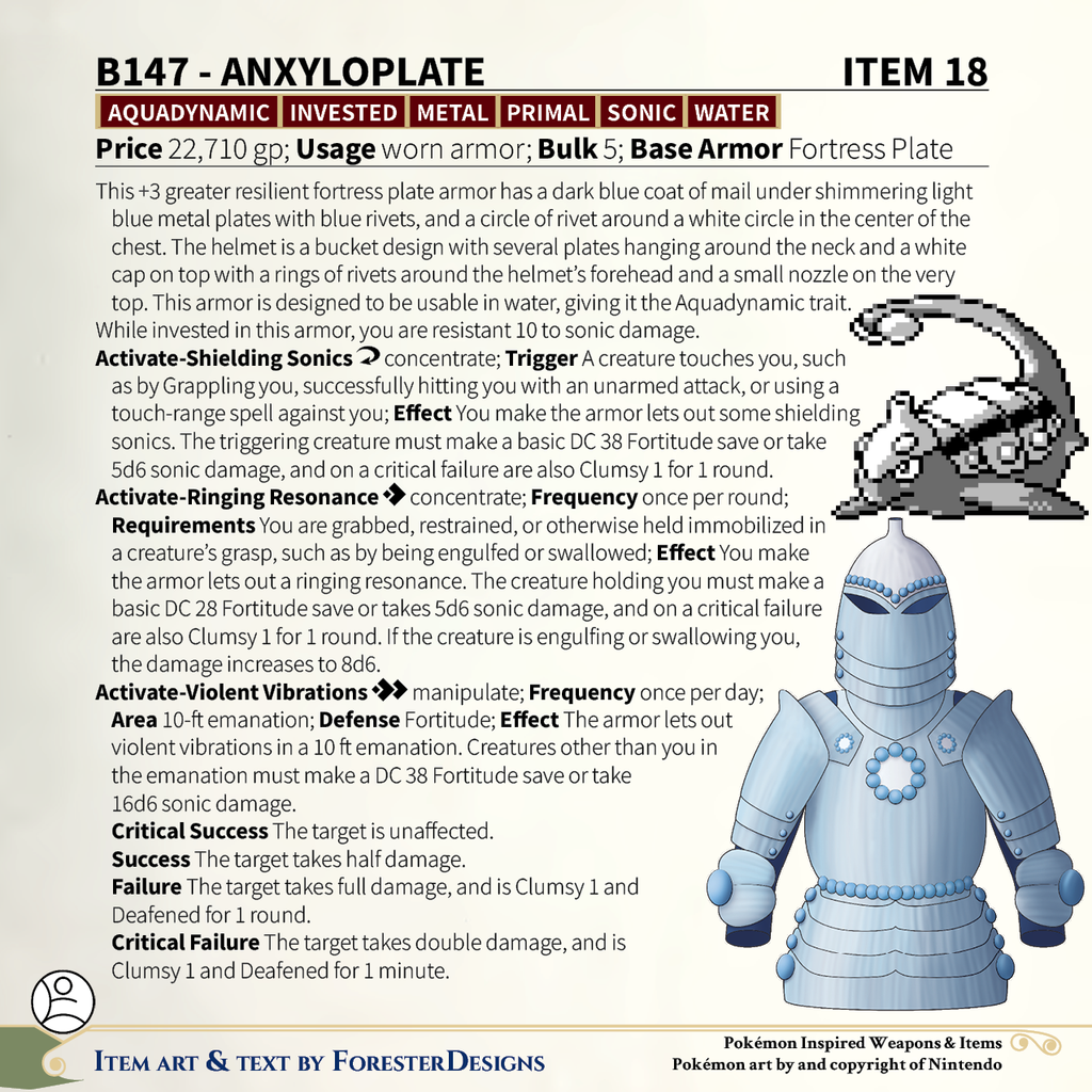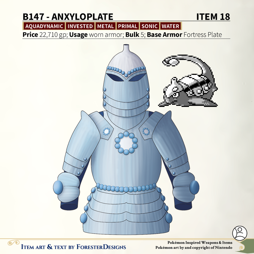 My #TTRPG #Pokemon #MagicItem of the Day in both #DnD and #PF2e, with some #Anxylophorus #armor to swim in the sound!