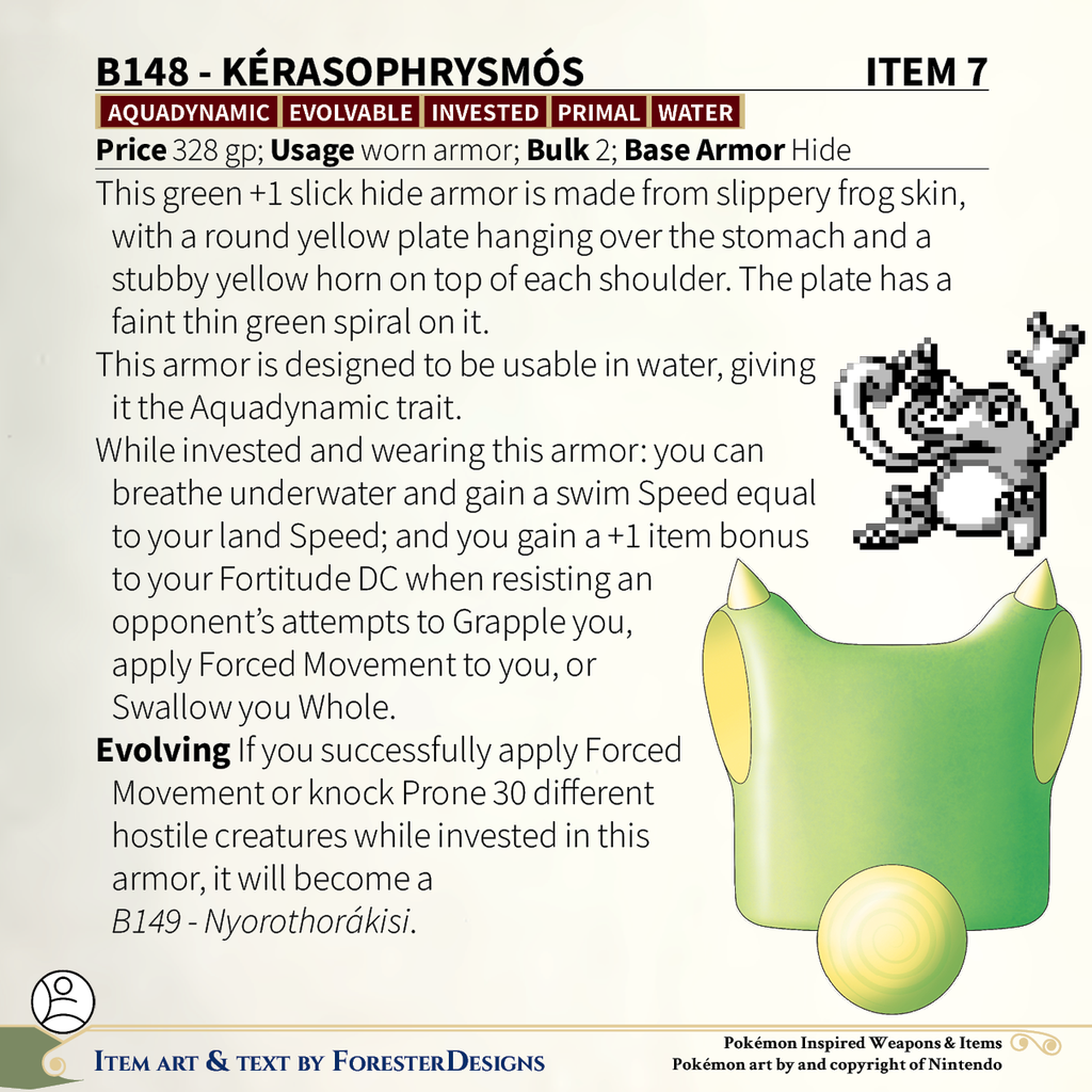 My #TTRPG #Pokemon #MagicItem of the Day in both #DnD and #PF2e, with some #HornedToad #armor to move your enemies around!