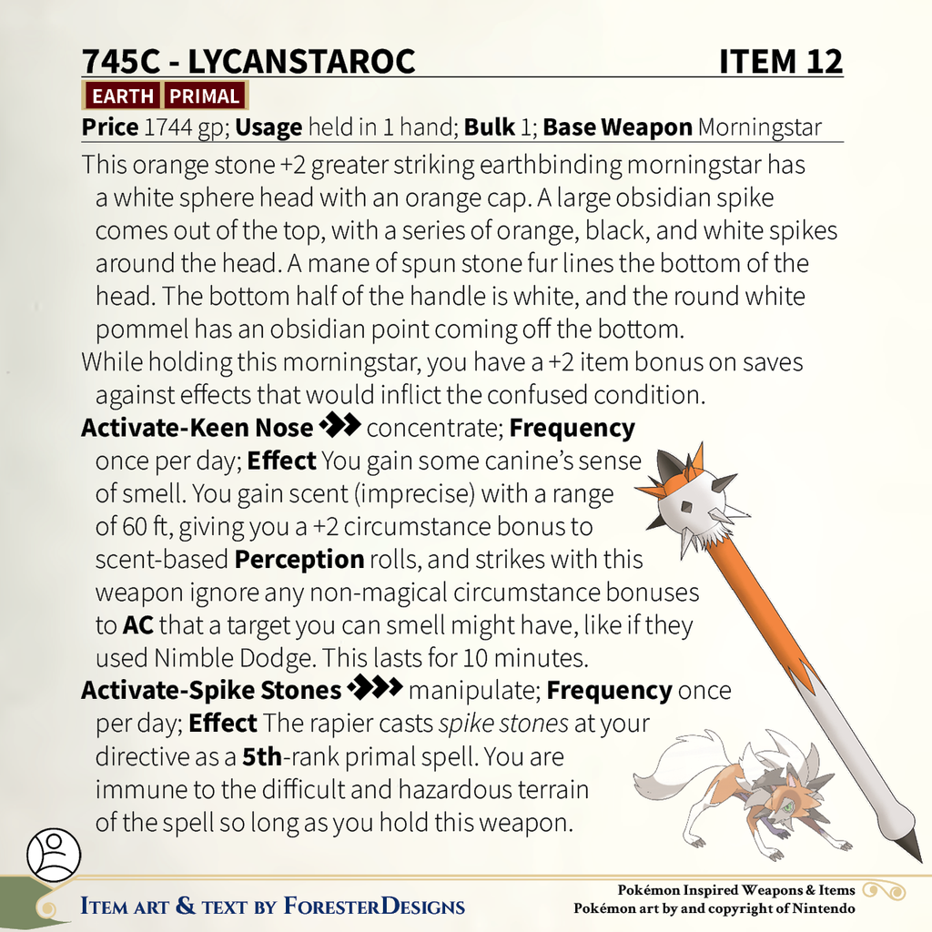 pf2epokemonmagicitemslycanrocmorningstarmagicitempathfinder2erpgrpgartpokemonart