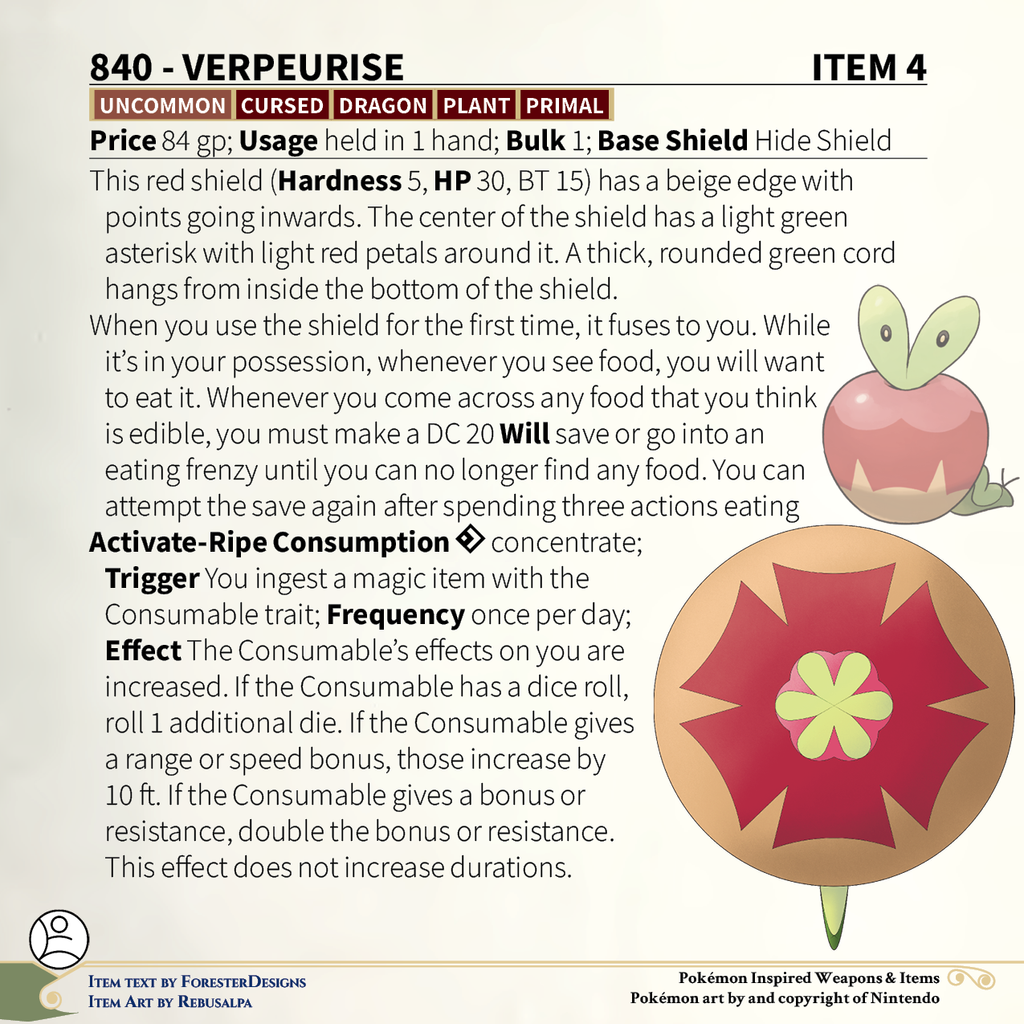 A #PF2e conversion of my older #Pokemon #MagicItems, with an #Applin #shield to get the most out of your potions!