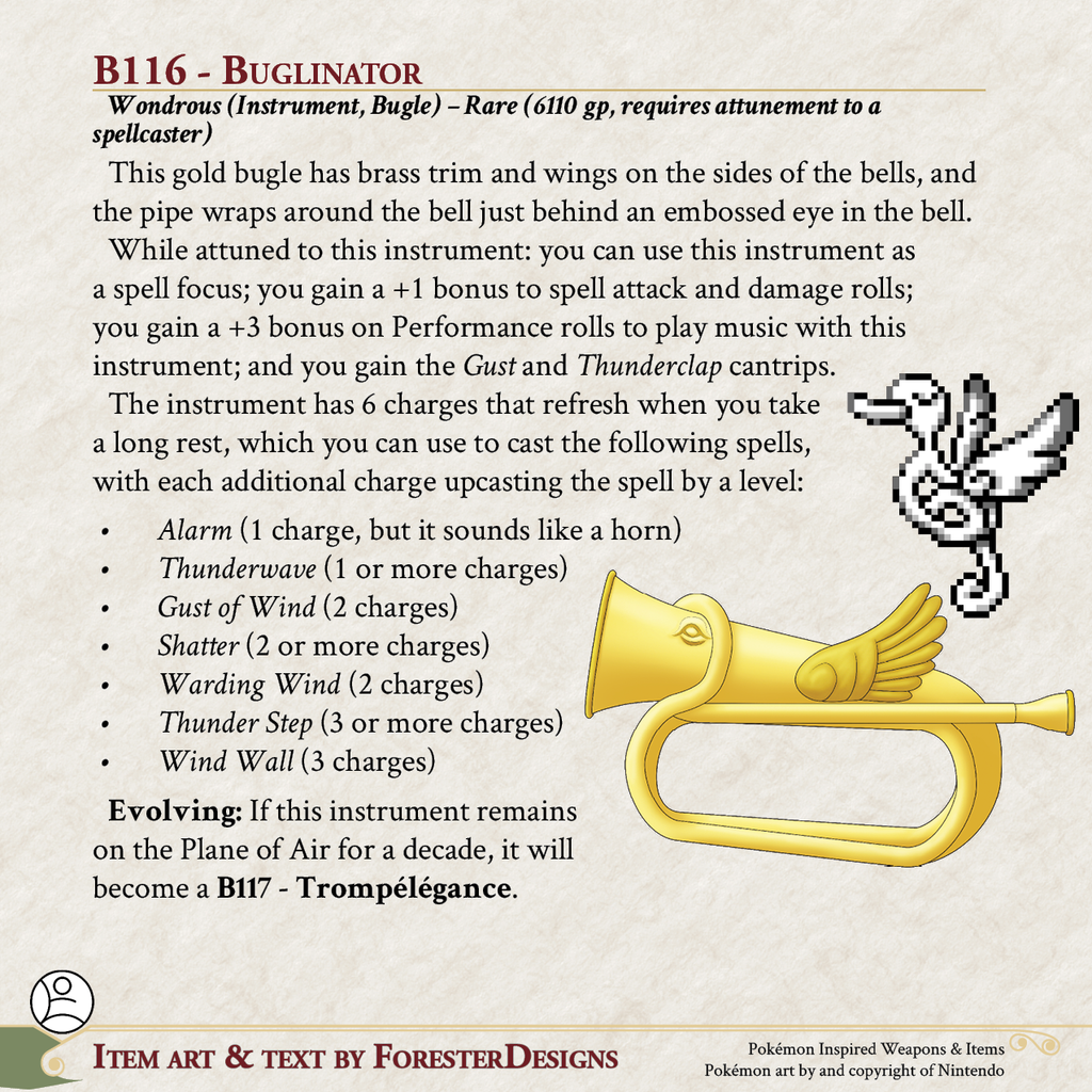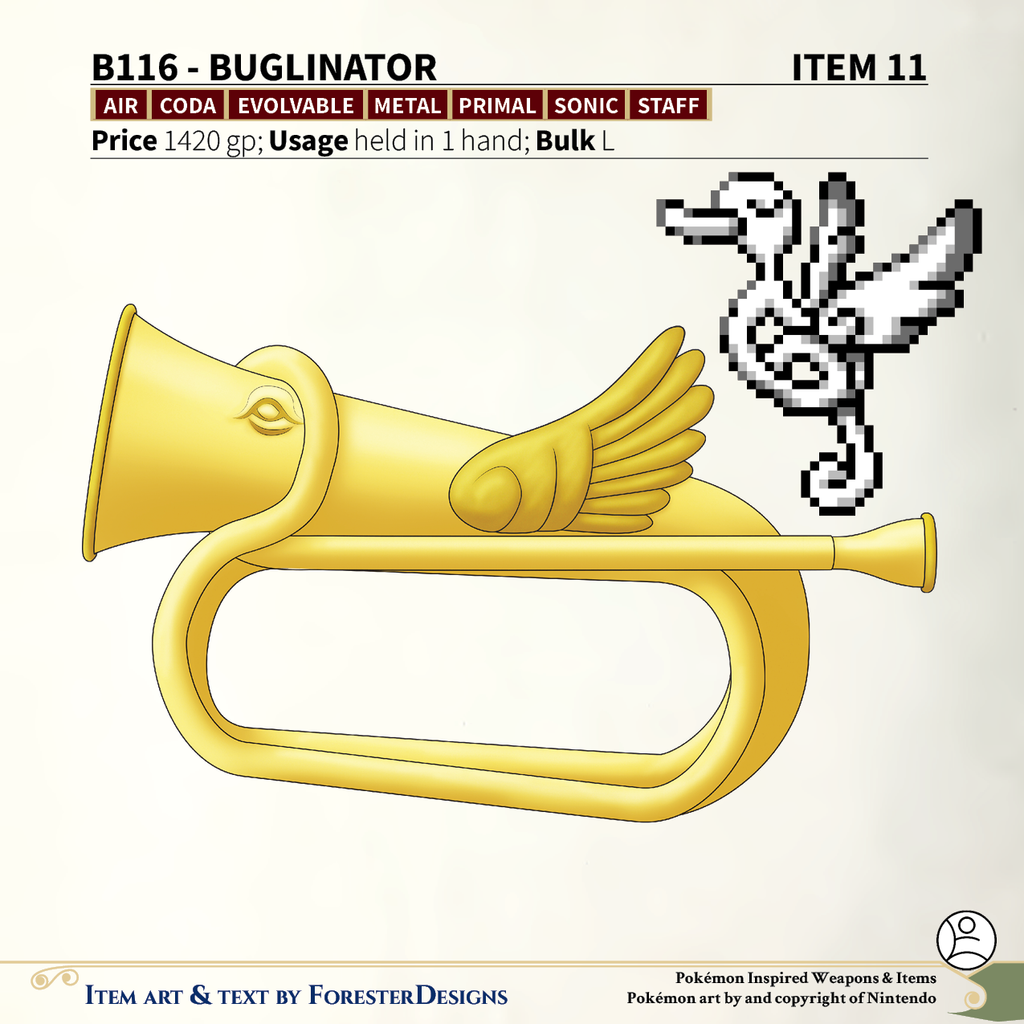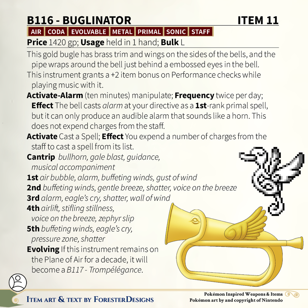 My #TTRPG #Pokemon #MagicItem of the Day in both #DnD and #PF2e, with a #TrumpetSwan #bugle to blow away your foes