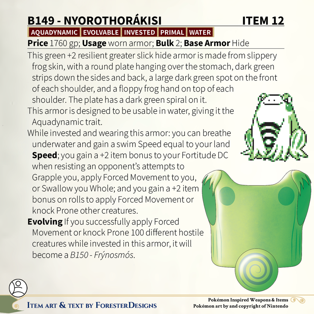 3. My #TTRPG #Pokemon #MagicItem of the Day in both #DnD and #PF2e, with some #Nyorotono #armor to put your enemies down!