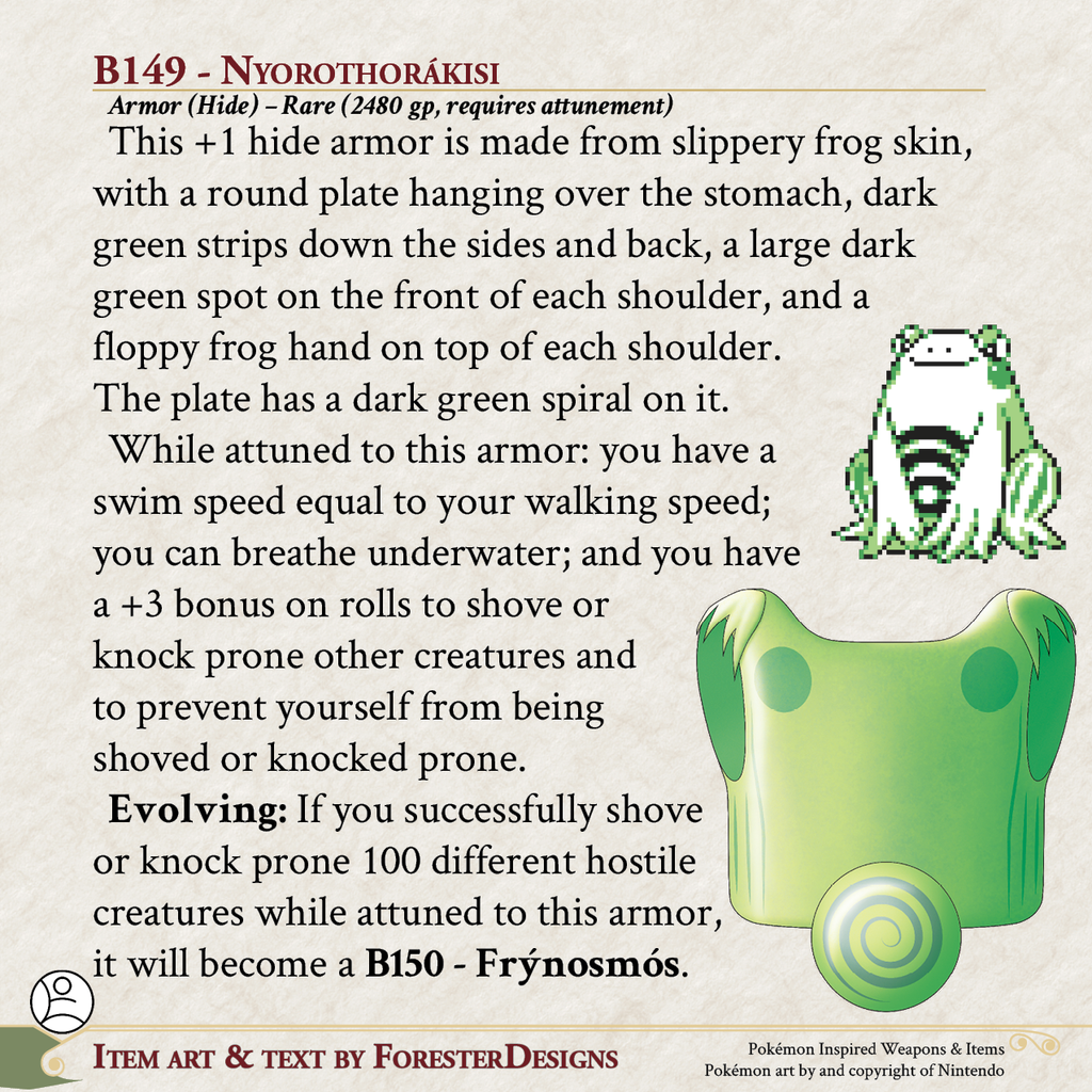 My #TTRPG #Pokemon #MagicItem of the Day in both #DnD and #PF2e, with some #Nyorotono #armor to put your enemies down!