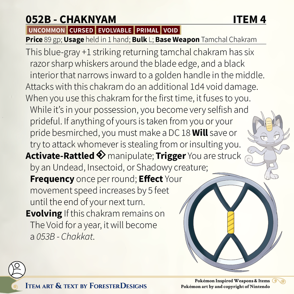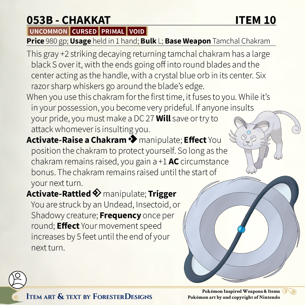 A #PF2e conversion of my older #Pokemon #MagicItems, with some #Alolan #Meowth & Alolan #Persian tamchal #chakrams to let your pride rule you!