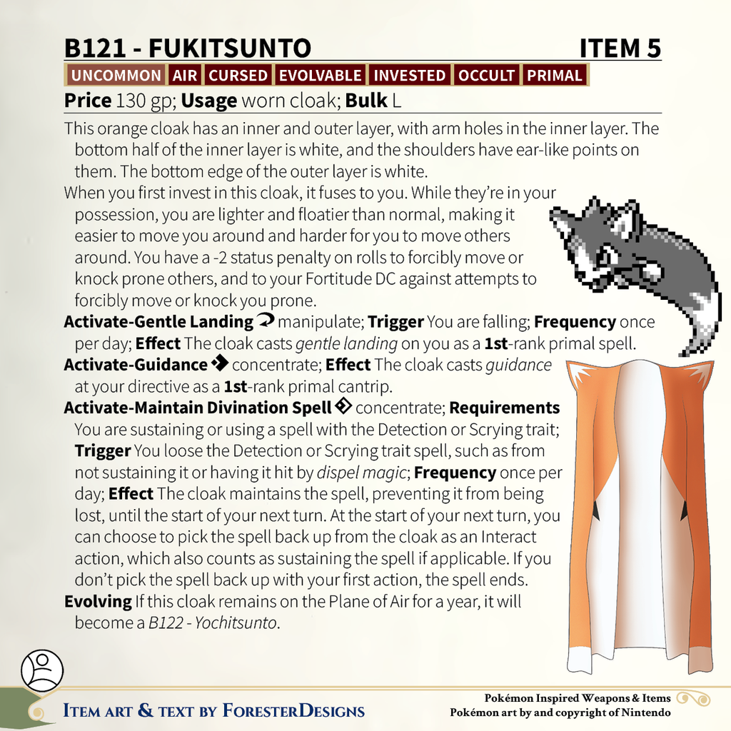 3. My #TTRPG #Pokemon #MagicItem of the Day in both #DnD and #PF2e, with a #Windsox #cloak to be lighter!